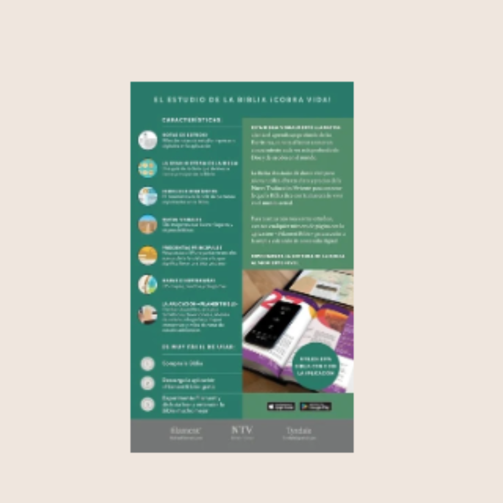Incluye acceso a la innovadora app Filament Bible, donde cada pagina conecta con contenido digital como devocionales, notas de estudio, mapas, videos y perfiles bíblicos que profundizan tu tiempo con Dios.